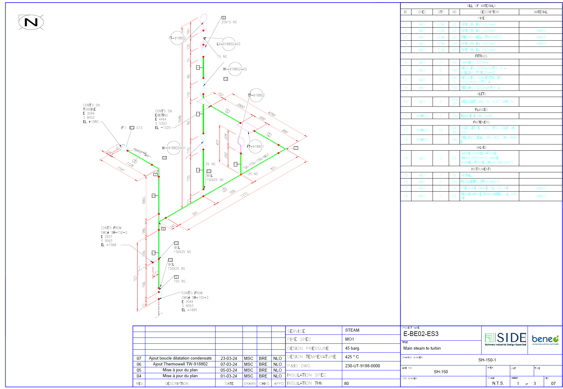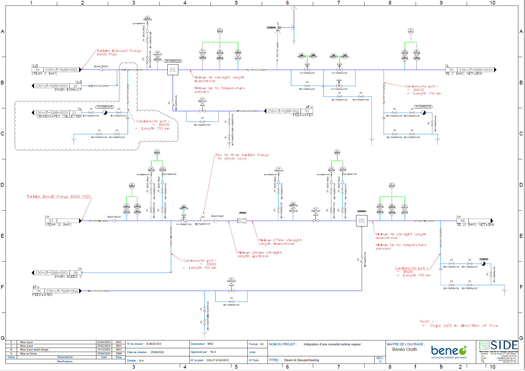 À partir de ce modèle, l'ensemble de la documentation technique nécessaire au projet a pu être générée sur base du modèle 3D (P&ID, Plans d’implantation, isométriques de tuyauterie et liste de matériels).
